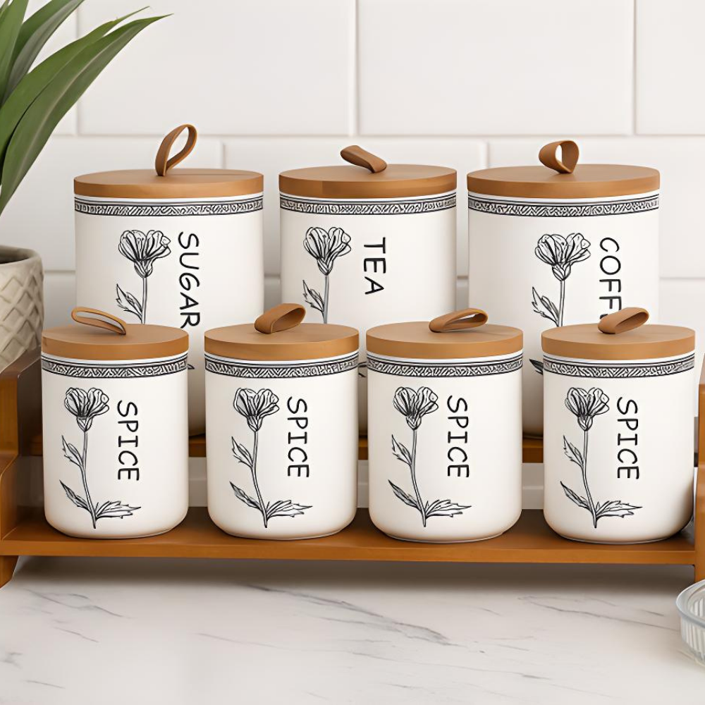 اجعلي مطبخك أكثر ترتيبًا ورقياً مع هذا الطقم العصري المصنوع من السيراميك عالي الجودة والمزود بغطاء محكم من الخشب الطبيعي ليحافظ على نكهة المحتويات طازجة دائمًا.