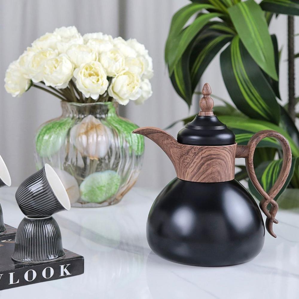 ترمس استيل بتصميم عصري خشبي ــ اسود ــ 0.6 لتر