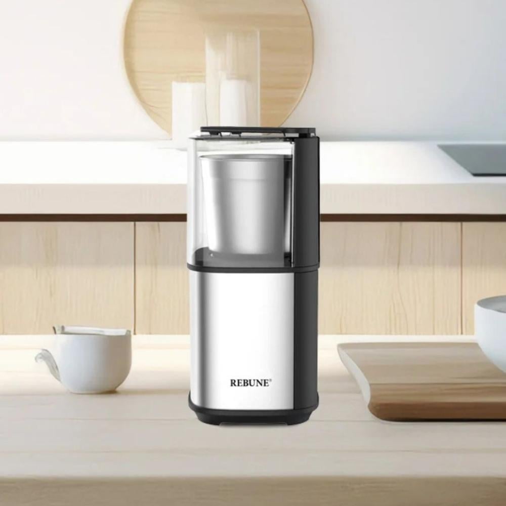 طحن مثالي بنكهة طازجة مع ريبون مطحنة القهوة والبهارات 300 واط وبسعة 80 جرام استمتع بمذاق البن الطازج وتوابل مطحونة بنعومة فائقة في كل مرة مع مطحنة Rebune الكهربائية تصميم عصري بحجم صغير يناسب أي مطبخ، وسرعتين للطحن تمنحك تحكمًا كاملًا في القوام الذي تفضله.