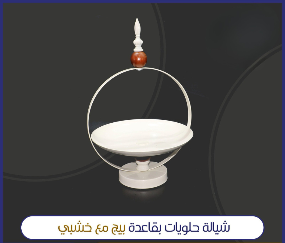 شيالة حلويات أنيقة بقاعدة بيج مزودة بقاعدة خشبية تضفي لمسة دافئة وطبيعية على تقديم الحلويات. تصميم عملي وجميل يناسب جميع المناسبات ويضيف لمسة فاخرة على مائدتك.