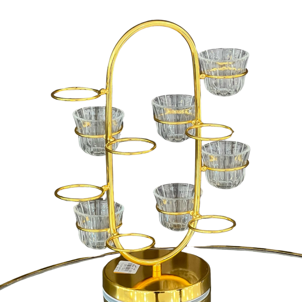 شيالة معدنية أنيقة مخصصة لحمل 12 فنجان قهوة أو شاي، تصميم عملي يسمح بتنظيم الفناجين بشكل مرتب وسهل الحمل. مثالية للاستخدام في المناسبات والضيافة، مصنوعة من مواد متينة لضمان الاستقرار والمتانة.