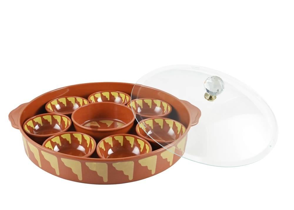 العدد: 9 قطع ( 7 صحون صغيرة مع صينية وغطاء بلاستيكي)