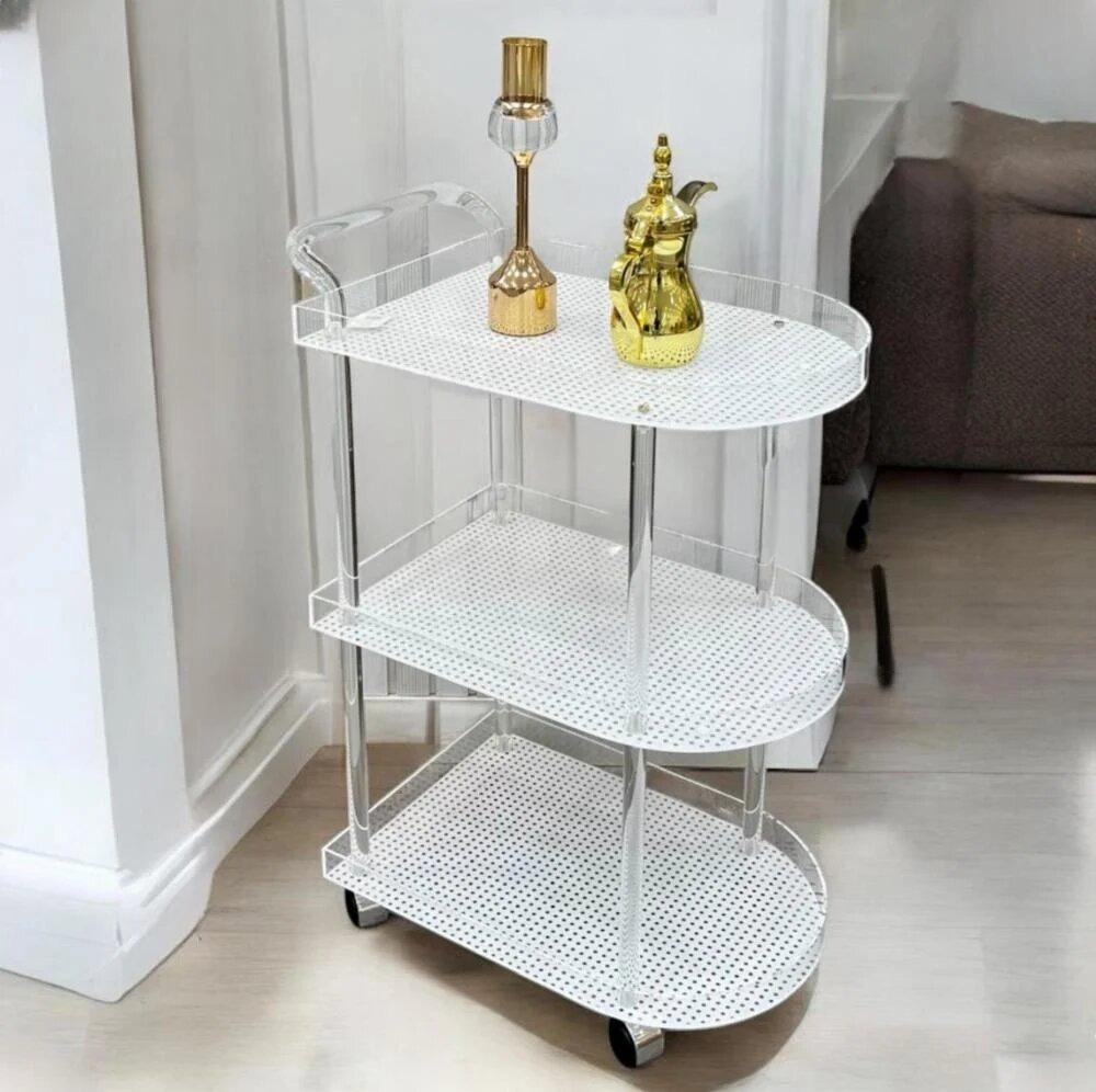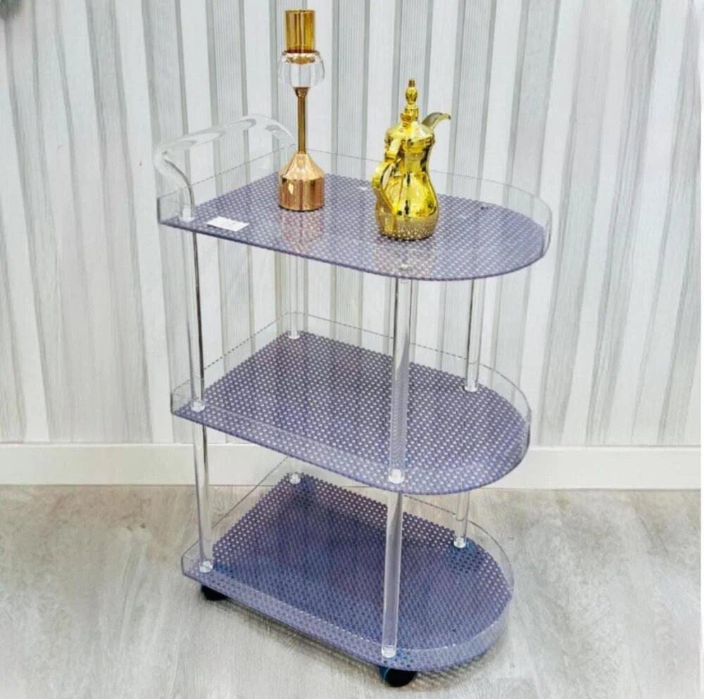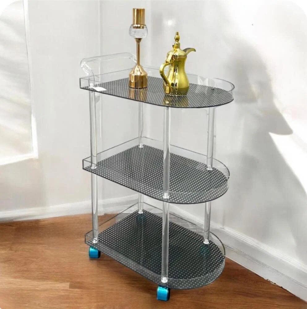 أضيفي لمسة من الأناقة والعملية إلى منزلك مع عربة التقديم الأكريليك، المصممة خصيصًا لتلبية احتياجاتك في تقديم الطعام والمشروبات بطريقة مميزة. تتميز هذه العربة بتصميمها العصري والشفاف. مصنوعة من أكريليك عالي الجودة، فهي خفيفة الوزن ومتينه ومزودة بعجلات مما يسهل نقلها من مكان لآخر. مثالية للمناسبات، الحفلات، أو حتى للاستخدام اليومي في المنزل. لا تفوت الفرصة للحصول على هذه العربة الفاخرة.