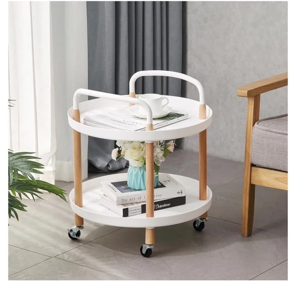 طاولة جانبية دائرية لغرفة المعيشة ويمكن وضعها بجانب السرير ابيض
