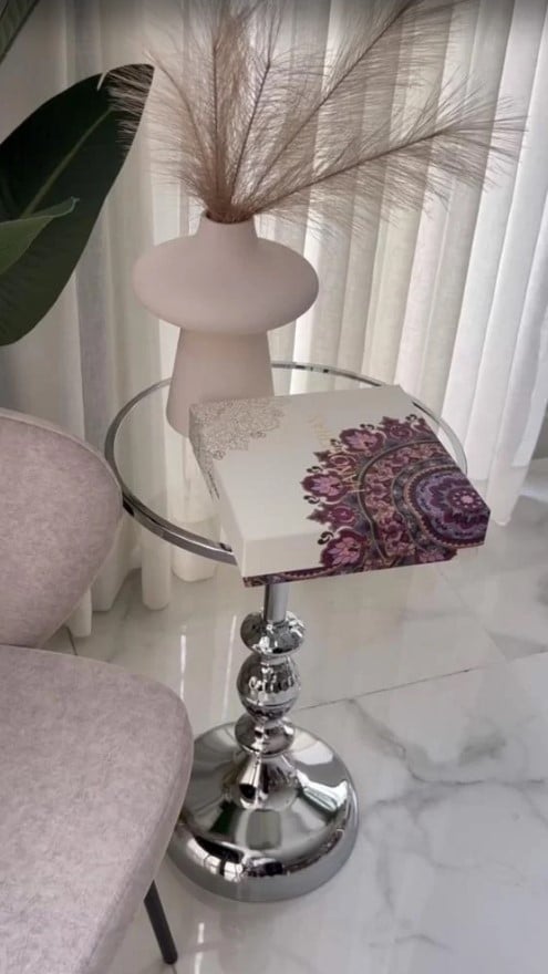 أضيفي لمسة فاخرة إلى منزلكِ مع انيقة تجمع بين التصميم العصري والفخامة. مصنوعة من إطار معدني فضي يعزز من متانتها وأناقتها، مع سطح زجاجي فاخر يمنحها مظهرًا راقيًا. تتميز بحجمها المثالي الذي يجعلها مناسبة للاستخدام المتعدد سواء في غرفة المعيشة، بجانب الأريكة، أو حتى كقطعة ديكور أنيقة.