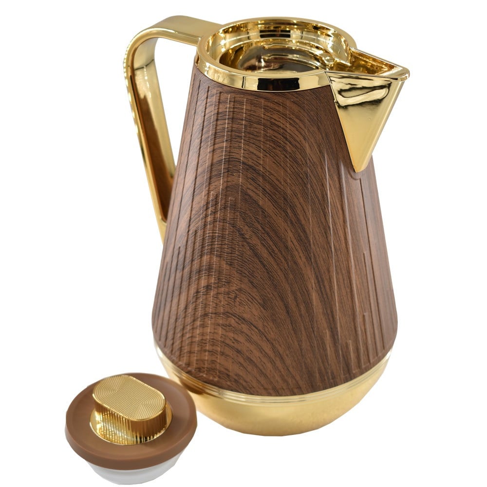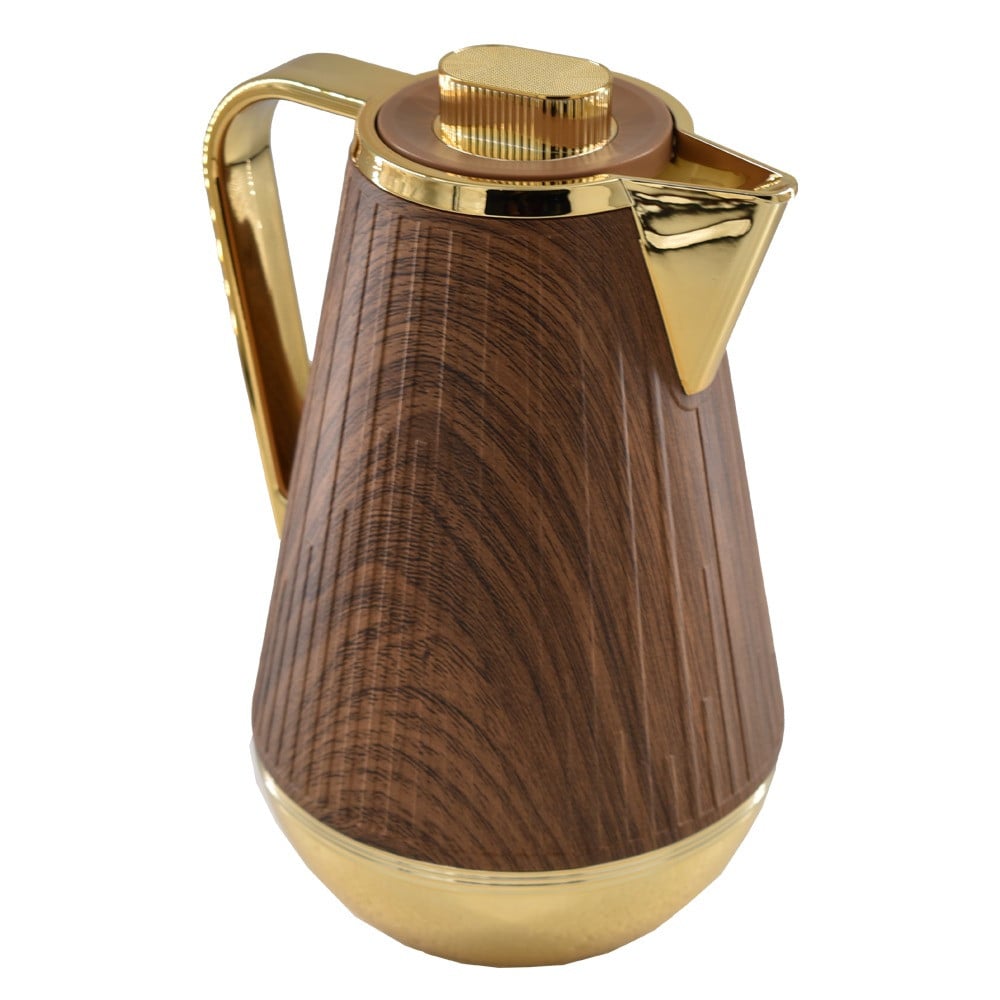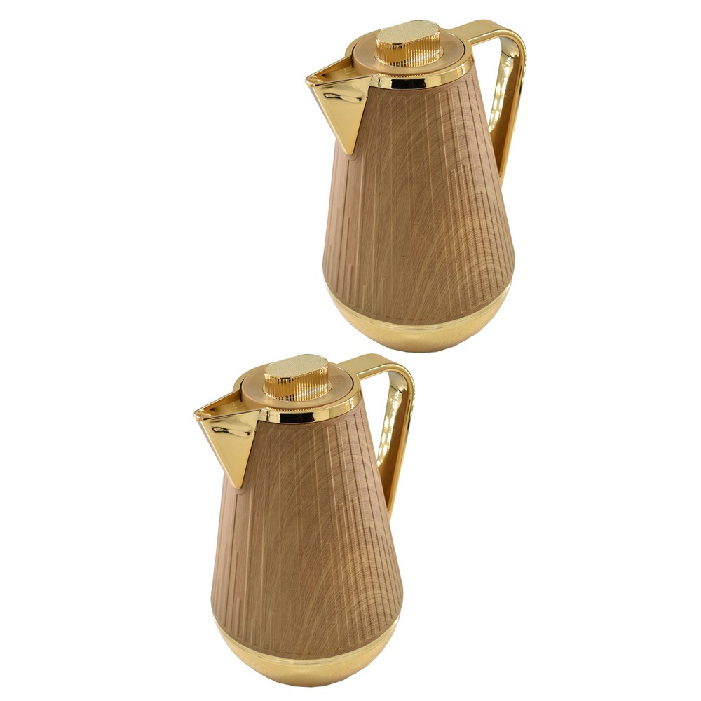 طقم ترامس شاي وقهوة بتصميم خشبي – 1 لتر + 1 لتر