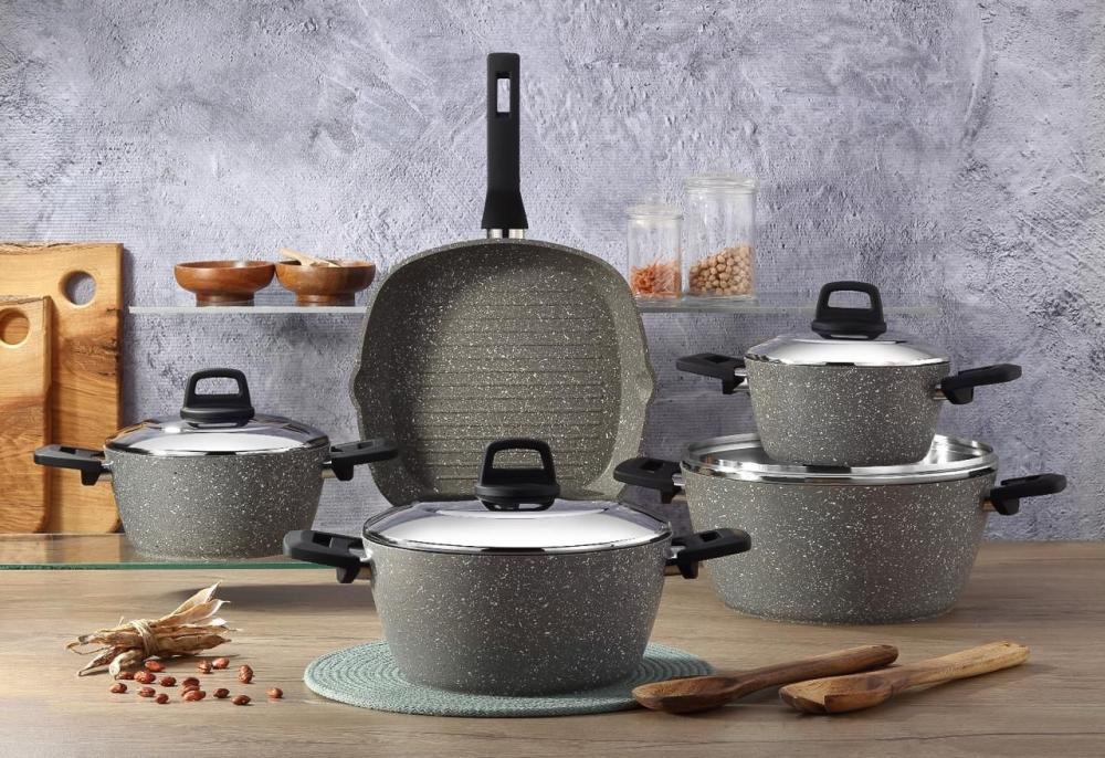 طقم أواني طهي جرانيت مكون من 5 قطع بمقاسات مختلفة، يجمع بين المتانة والأداء العالي. يتميز بطبقة غير لاصقة لطبخ صحي وسهل، وتوزيع مثالي للحرارة. تصميم عصري يناسب جميع المطابخ ويُلبي احتياجات الطهي اليومية.