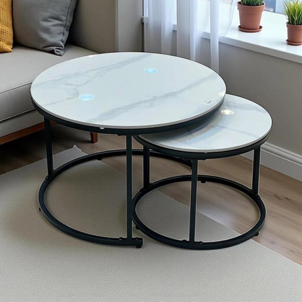 أضف لمسة فخامة عصرية إلى منزلك مع طقم الطاولات الدائرية بسطح رخامي أبيض أنيق، يجمع بين الرقي والعملية.