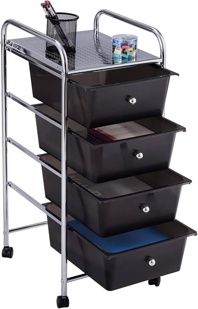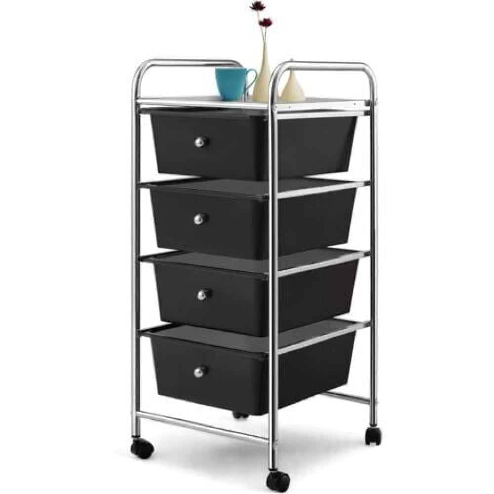 عربة تخزين مع عجلات 4 ادراج اسود
