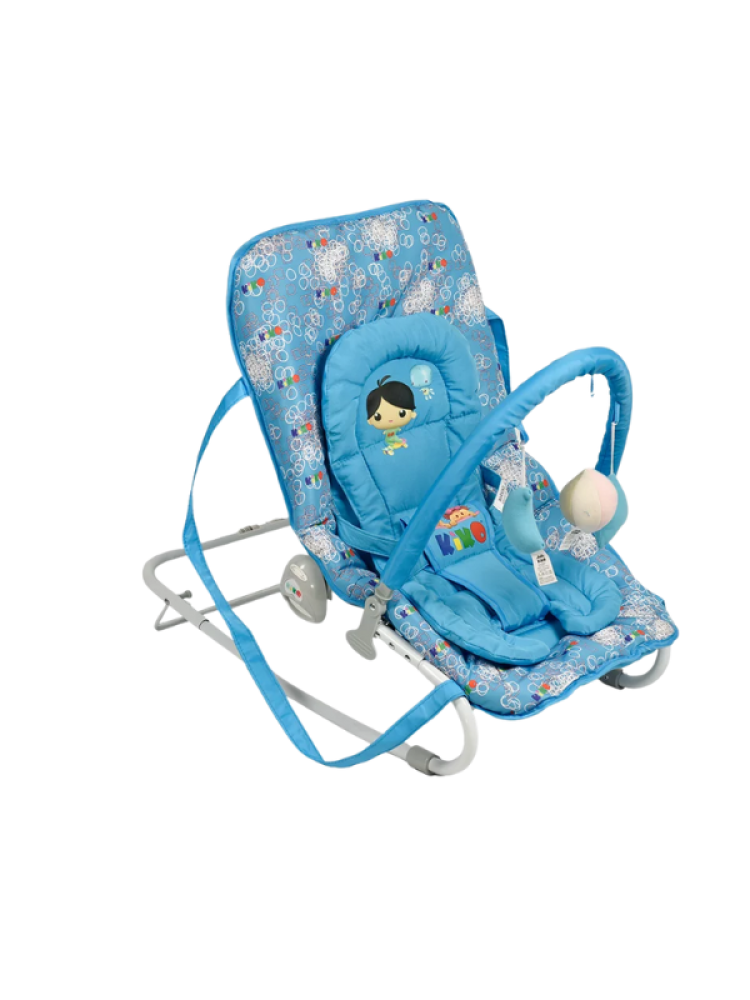 كرسي هزّاز عملي وآمن لطفلك، يمنحه الراحة والترفيه في آنٍ واحد. يتميز بتصميم مبطن بالكامل برسومات مرحة ولون أزرق مبهج، ومزود بشريط ألعاب ناعم لتحفيز الحواس. مثالي لتهدئة الطفل أو وقت القيلولة.
