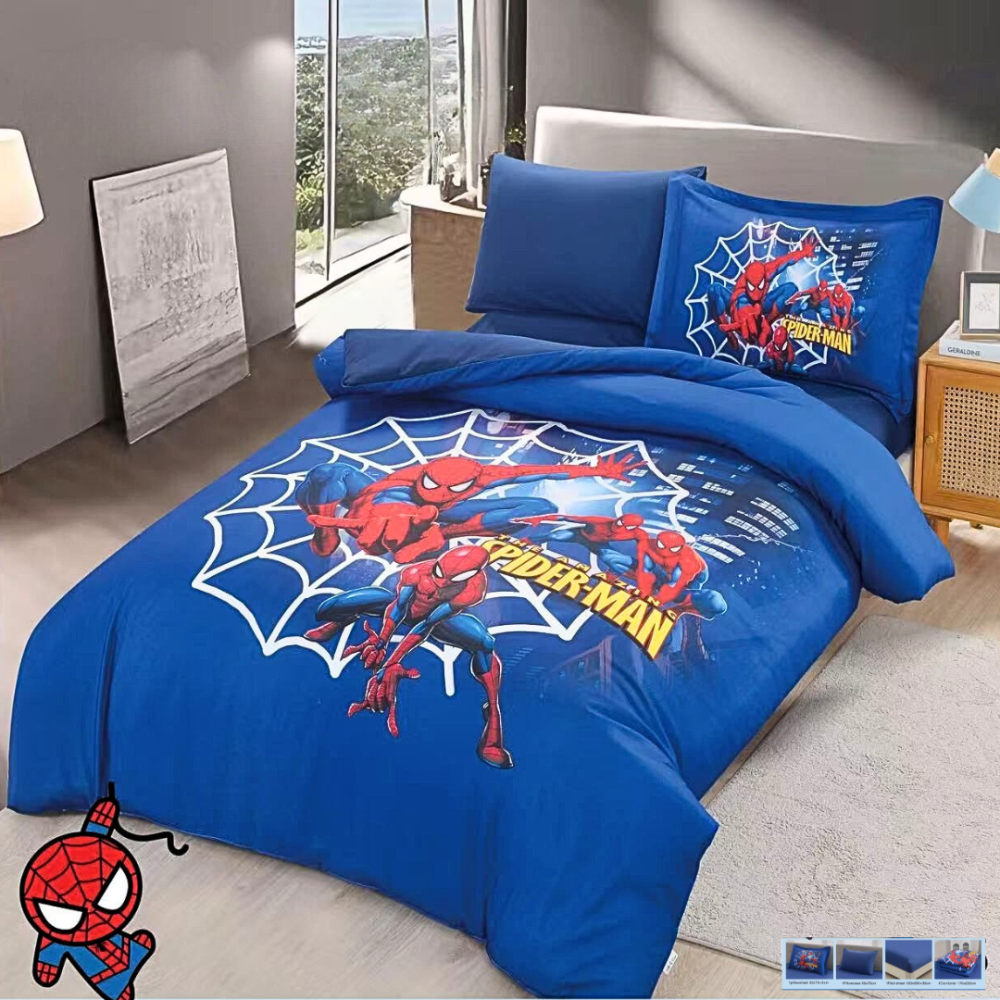 عدد القطع: 4 قطع ( لحاف/ شرشف مطاط/ 2 غطاء وسادة كبيرة).