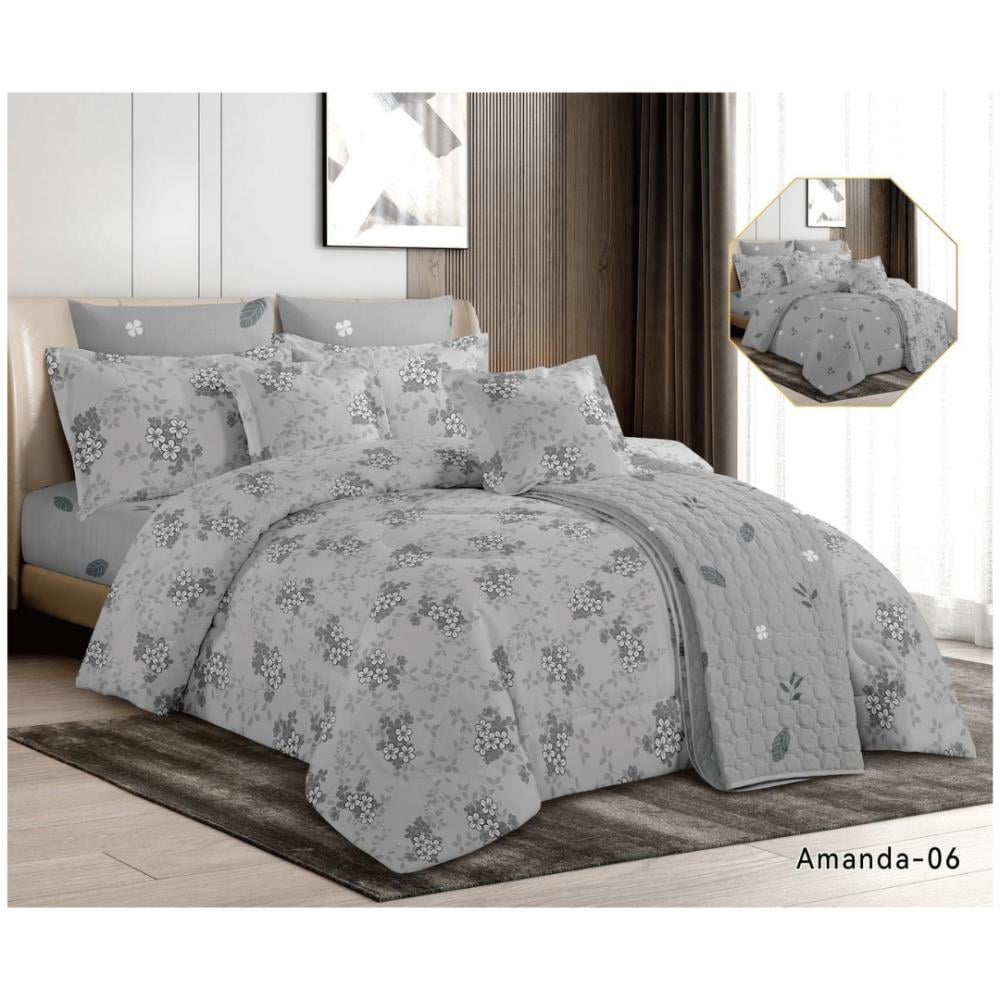 امنحي غرفة نومك لمسة من الأناقة والنعومة مع طقم اللحاف Amanda-03، بتصميم أنثوي مميز يمزج بين الألوان الحالمة والزهور الرقيقة.