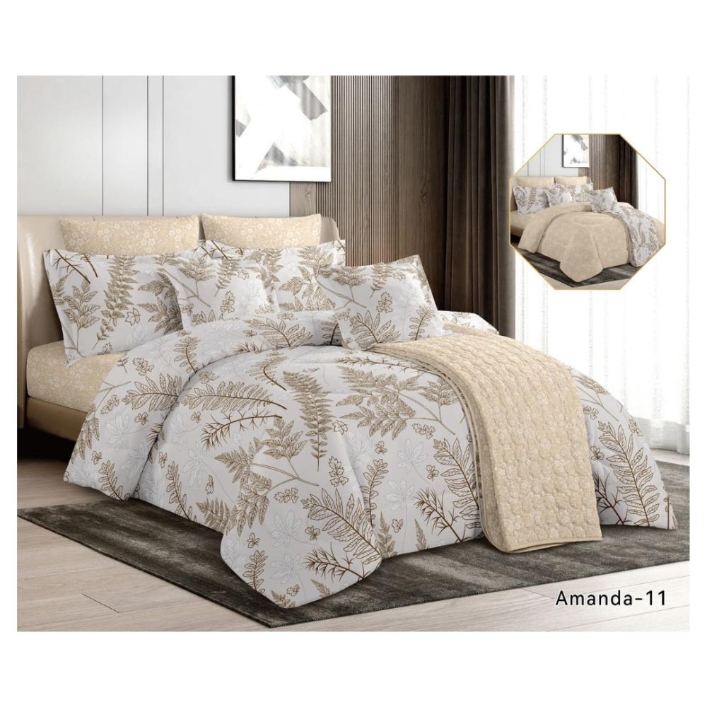 امنحي غرفة نومك لمسة من الأناقة والنعومة مع طقم اللحاف Amanda-03، بتصميم أنثوي مميز يمزج بين الألوان الحالمة والزهور الرقيقة.