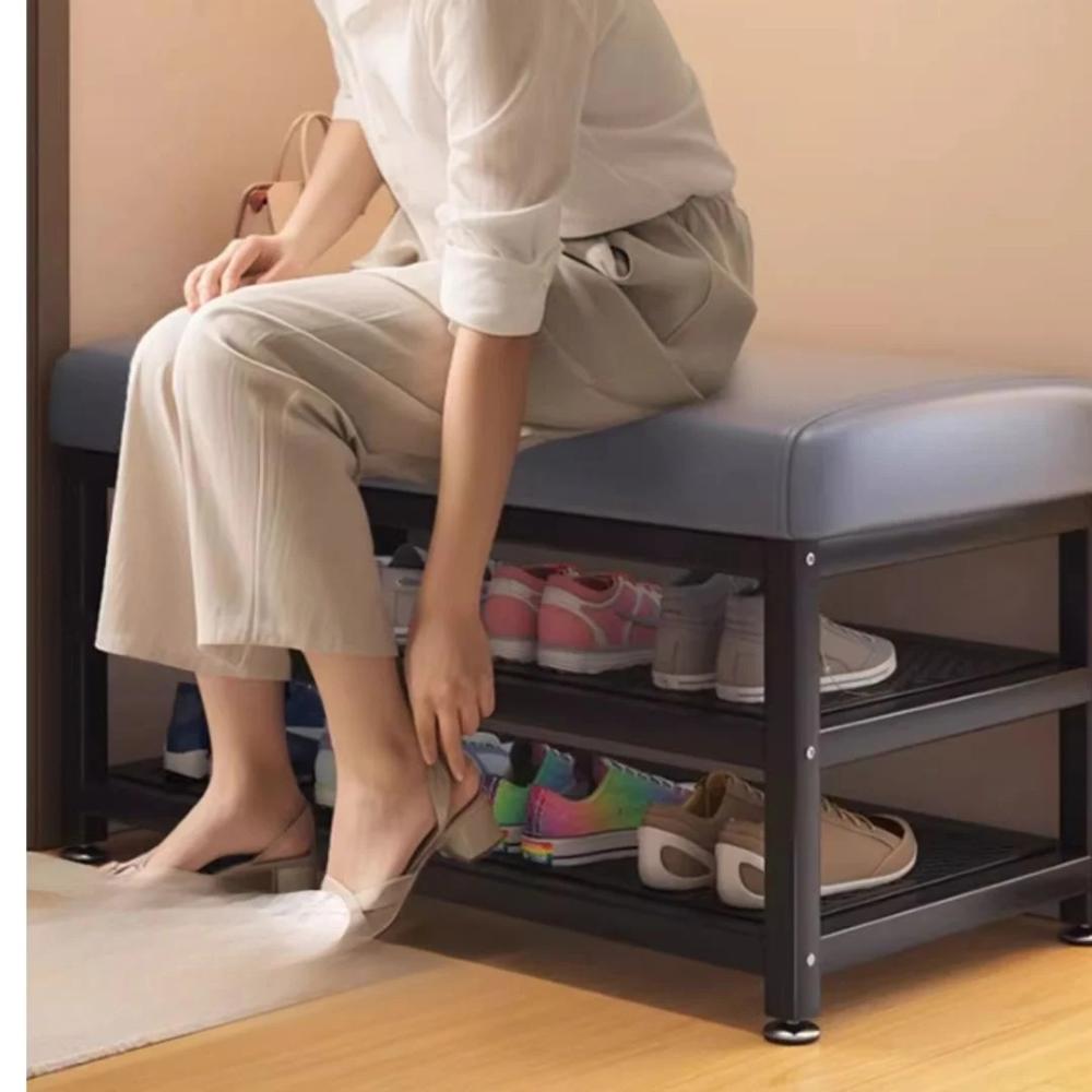 - راحة مزدوجة يجمع بين مقعد مريح ورفوف لتخزين الأحذية.